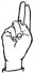 На ћирилици написано БЕРИША ШТАЈЦЕР састоји се из 13 слова [?]. Исписано ћириличном једноручном азбуком за глувонеме:
